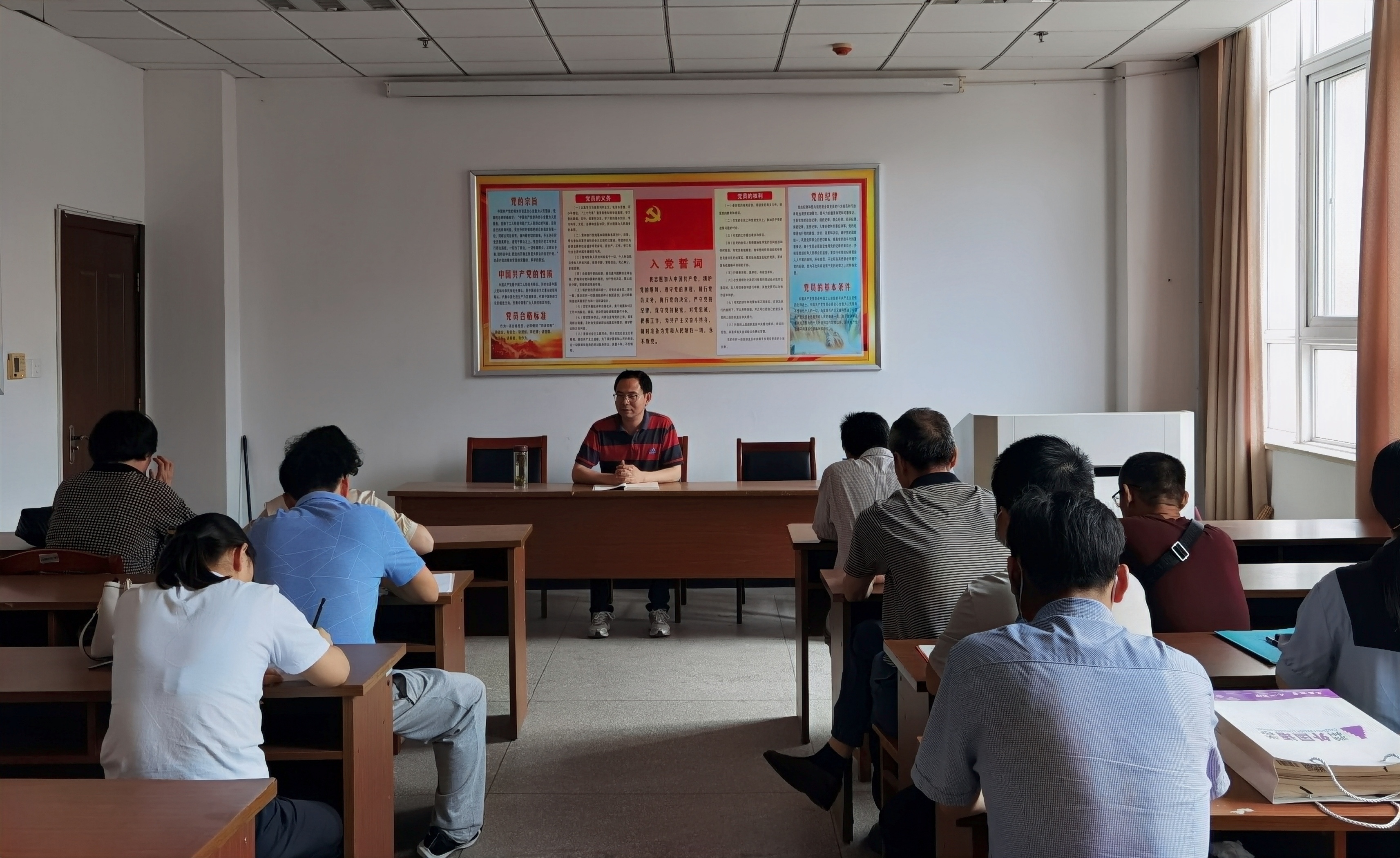 6月16日下午,基础教学部教工第一党支部书记金本能教授在综合楼318会议室为党支部全体党员做了题为《做党和人民满意的好老师》的党课讲座,基础教学部人文素养教研室和数理教研室非党员教师参加了学习。