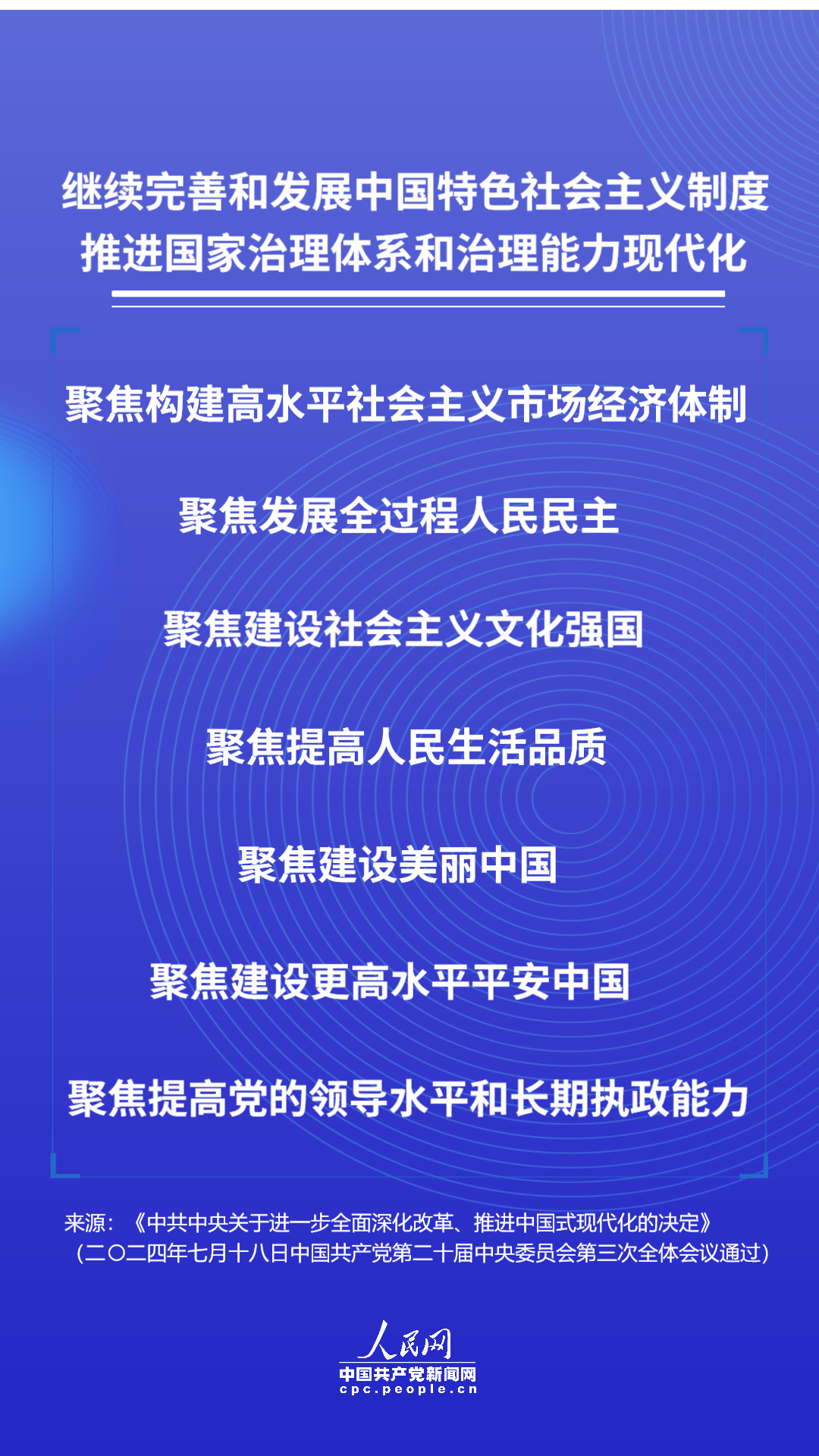 本期主题:“一个国家要发展,明确目标和路径很重要”。党的二十届三中全会审议通过的《中共中央关于进一步全面深化改革、推进中国式现代化的决定》(以下简称《决定》),明确了进一步全面深化改革的总目标,就是“继续完善和发展中国特色社会主义制度,推进国家治理体系和治理能力现代化”;明确了到2035年的阶段性改革目标和“七个聚焦”的分领域改革目标,要求到2029年完成本决定提出的改革任务。