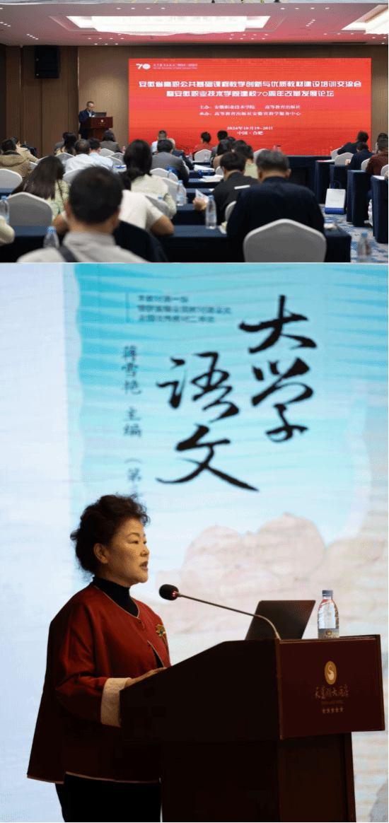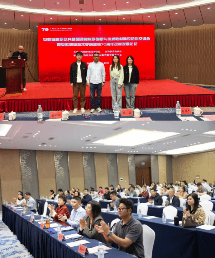为提升基础教学部公共课教师教学能力和教材建设水平,推动awc官网职业教育高质量发展,10月19日至20日,基础教学部创新创业教研室、劳动教育教研室、数理教研室等四名教师赴合肥参加安徽省高职公共基础课程教学创新与优质教材建设培训交流会暨安徽职业技术学院建校70周年改革发展论坛,会议由安徽职业技术学院与高等教育出版社主办。