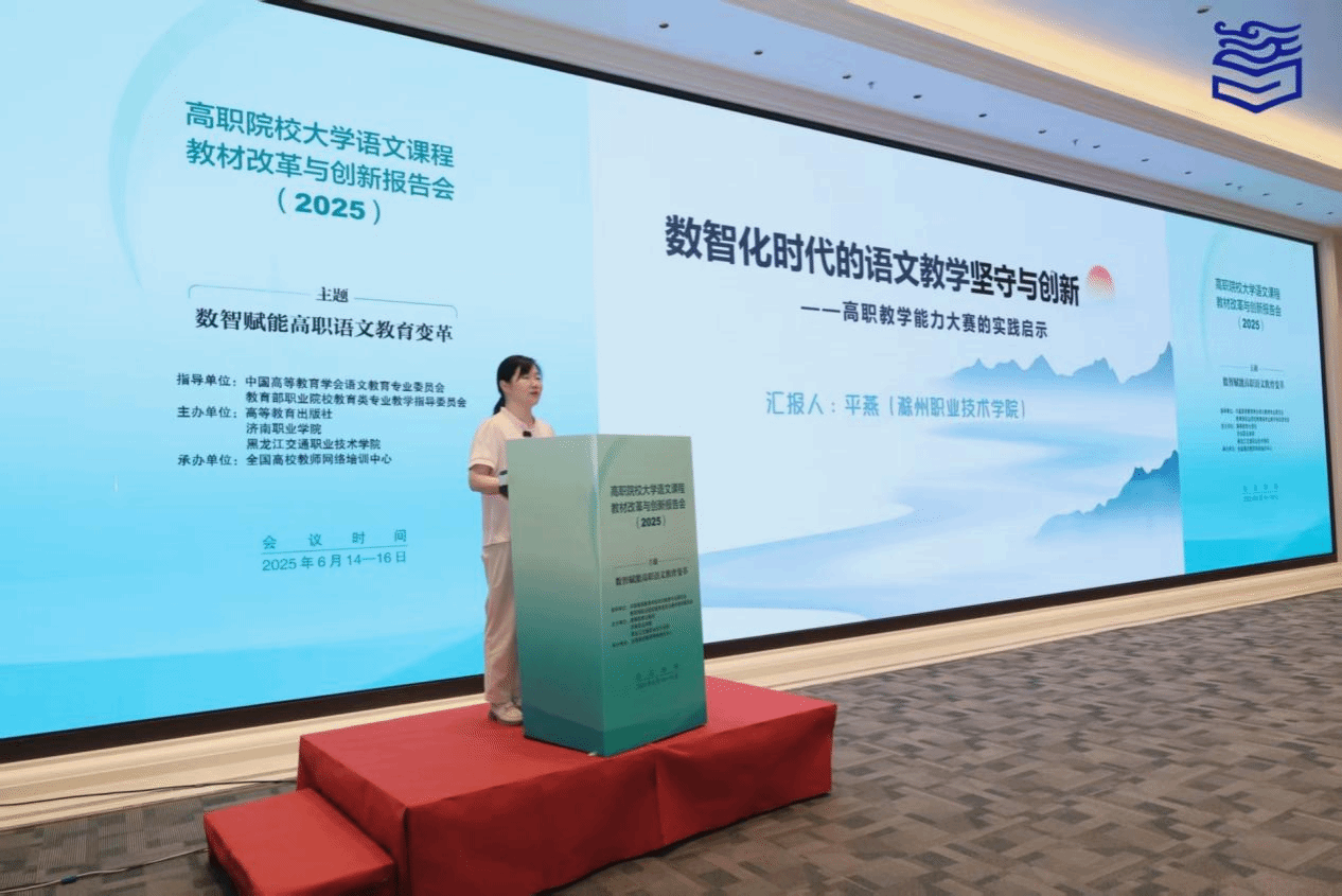 awc777万象城娱乐官网基础教学部教师平燕受邀参会,并作了题为“数智化时代的语文教学坚守与创新——高职教学能力大赛的实践启示”的专题发言。本次报告会以“数智赋能高职语文教学变革”为主题,由中国高等教育学会语文教育专业委员会、教育部职业院校教育类专业教学指导委员会指导,高等教育出版社联合济南职业学院、黑龙江交通职业技术学院举办,全国高校教师网络培训中心承办。会议聚焦人工智能技术驱动的高职院校大学语文课程教学内容、教学方法与教学模式的改革与创新,邀请了“人工智能 + 教育”领域的众多专家、学者及高职语文课程教学名师,共同深入交流研讨,致力于推动课程、教材、教学数字化变革不断走深、向实。