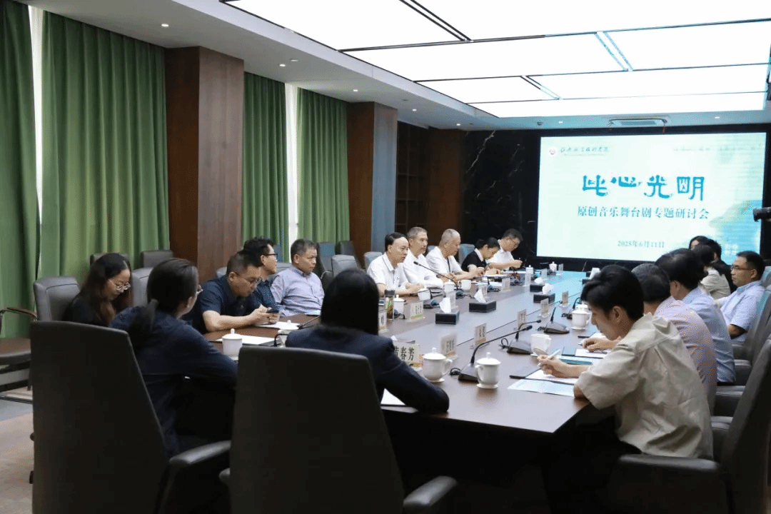 为推动awc官网美育教学工作高质量发展,开拓学校美育新格局,6月11日下午,美育教研室全体教师受邀赴绍兴职业技术学院,观摩学习由该校师生历时三年精心创排的原创音乐舞台剧《此心光明》全剧幕演出,并就本次演出展开深入交流。