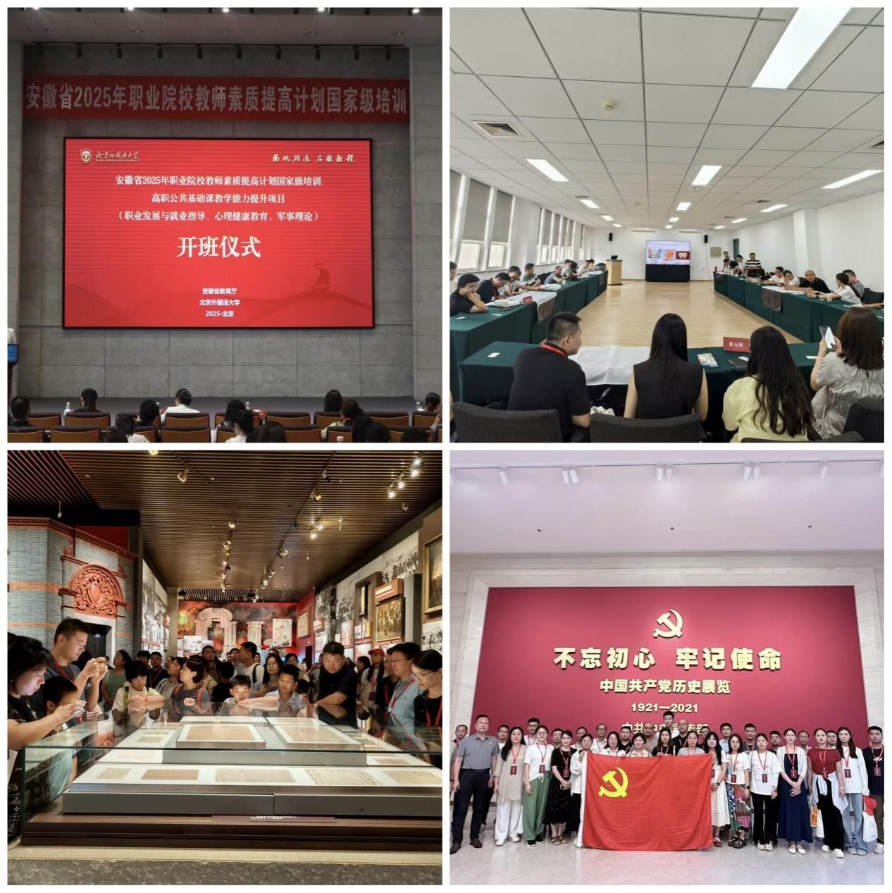 为深入贯彻《安徽省教育厅关于做好2025年职业院校教师素质提高计划国家级培训工作的通知》文件精神,切实提升教师教学能力,2025年8月,awc官网基础教学部胡悦、姚美两位教师参加安徽省2025年职业院校教师素质提高计划国家级培训——公共基础课(心理健康教育、军事理论)教学能力提升项目。此次培训分阶段于北京、合肥两地开展,为教师搭建起学习交流与专业成长的优质平台。