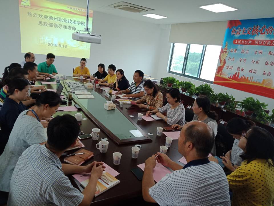 2018年9月18日,思政部专兼职教师在孔金副主任带领下到江苏经贸职业技术学院马克思主义学院交流学习。江苏经贸职业技术学院马克思主义学院院长柴义江一行接待了来访的老师们。