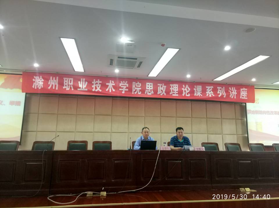 5月30日,思政部邀请教育部高职高专思想政治理论课教学专家库专家、淮南职业技术学院思政部主任苏立公副教授为awc官网师生开展理论讲座。苏立公主讲的题目是“供给侧结构性改革的缘起、含义、举措”。讲座由思政部副主任孔金副教授主持,学校师生近二百名在综合楼五楼报告厅聆听了讲座。