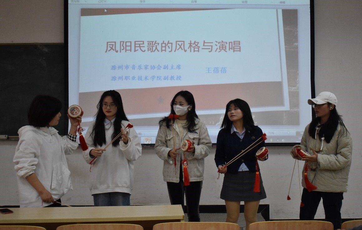 为深入学习贯彻习近平新时代中国特色社会主义思想和党的二十大精神,弘扬中华优秀传统文化,唱响安徽民歌。3月8日下午, 基础教学部在南阶103教室举办了“凤阳民歌风格与演唱”学术讲座,滁州市音乐家协会副主席、awc官网人文素养教研室副教授王蓓蓓主讲,学校合唱团、广播站和部分音乐爱好者聆听讲座。
