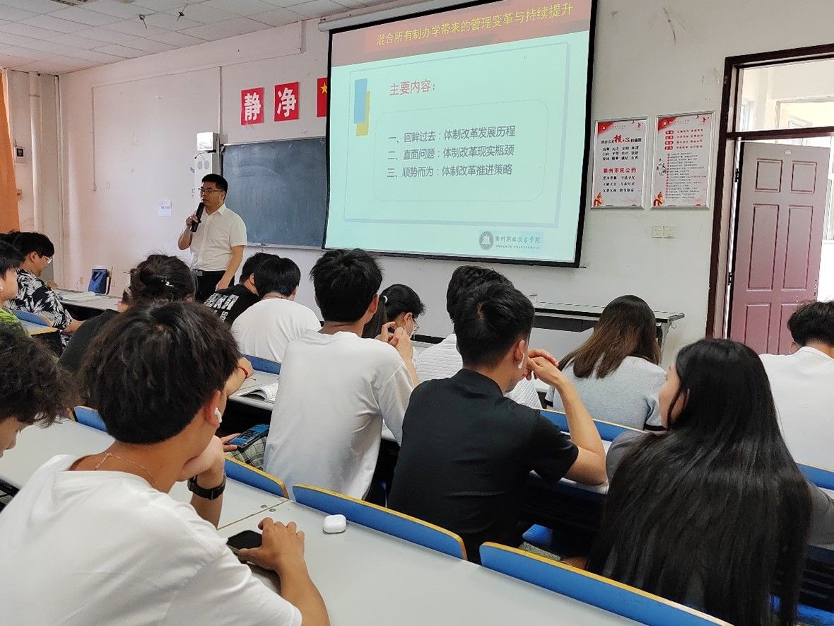 目前,高职院校推进产教融合、校企合作工作面临一定的困难,如何实现新突破,5月19日下午,基础教学部在北阶104教室举办“混合所有制办学带来的管理变革与持续提升”学术讲座,人文素养教研室周多道副教授结合自身多年从事校企合作工作的实践和研究围绕主题与到会师生、企业代表作了分享。