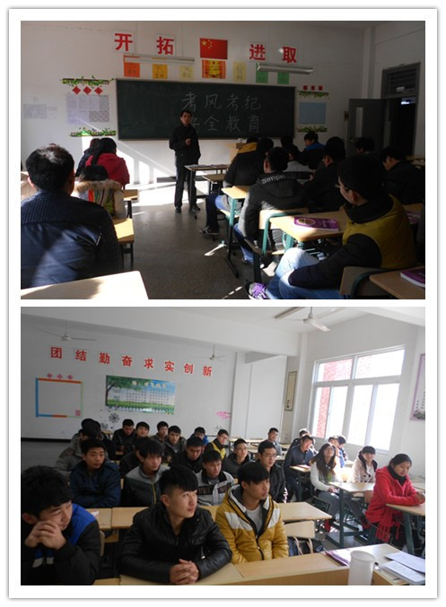 为响应学校号召,积极加强考风考纪教育,加强学生对安全的认识,2013年12月10日上午9点50分,机电系12级制冷班在5305召开了“考风考纪,教育”主题班会,会上得到了同学们积极的响应。