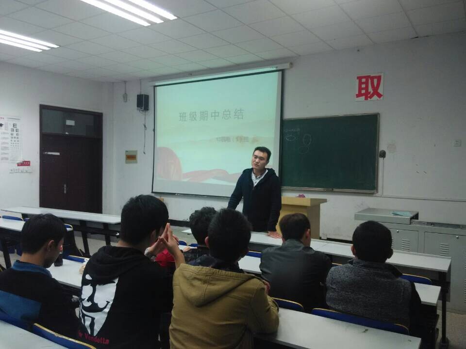 首先,由班级团支书赵蕴阳作了简洁的开场白,对我们前段时间的学习情况进行了肯定,还鼓励大家在今后付出更多的时间在学习上。也指出了个别同学迟到旷课现象的消极行为,让大家引以为戒。 其后由学习委员徐祥向我们展示了班级里的学习情况和各科作业的收缴情况,倡导大家好好学习,认真学习。体育委员施超也上台和我们讲述了接下来学校的活动安排。  这次班会总结意在带领全班同学对前半学期班级情况进行总结以及对未来的大学学习进行规划,让同学们认清自己学习的目标。