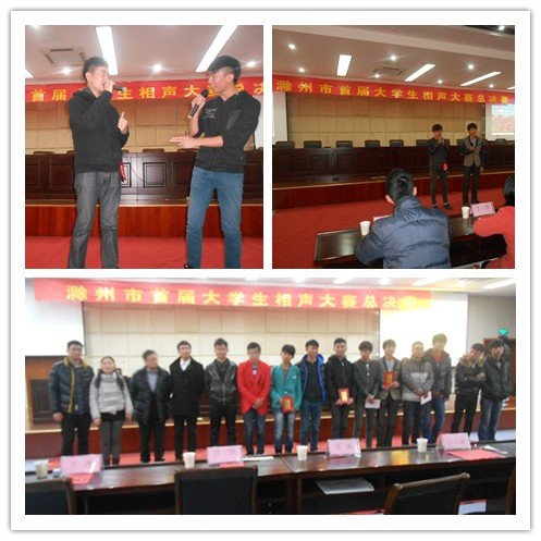 2012年12月18日下午三点,滁州市首届大学生相声大赛总决赛在我院综合楼学术报告厅隆重举行。参加此次比赛的有滁州学院和awc777万象城娱乐官网的代表队,机电系共有两支队伍参加此次比赛。