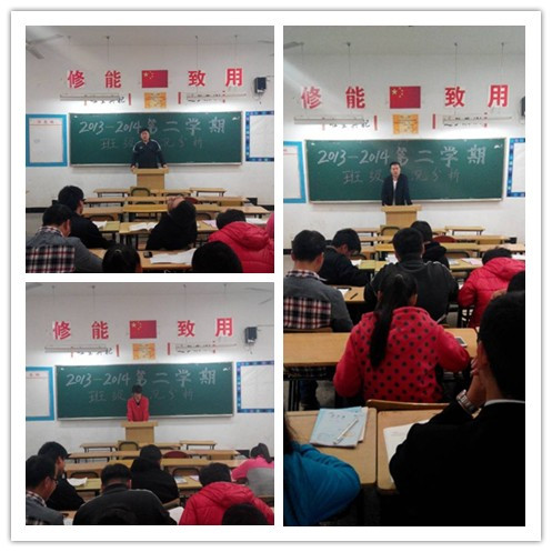 近日来,我13机电一班的晚自习出勤率不高,卫生情况也不容乐观。为解决这一系列问题,班委会在3月30 日晚开展以“正班风,爱学习”主题班会。