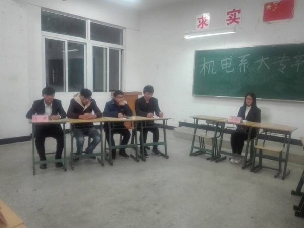 2016年11月27日晚上6点40分,机电系大专辩论赛在5403、5303、5203教室分别召开,本次比赛邀请机电系学生会主席李峰,机电系各部门部长为评委。