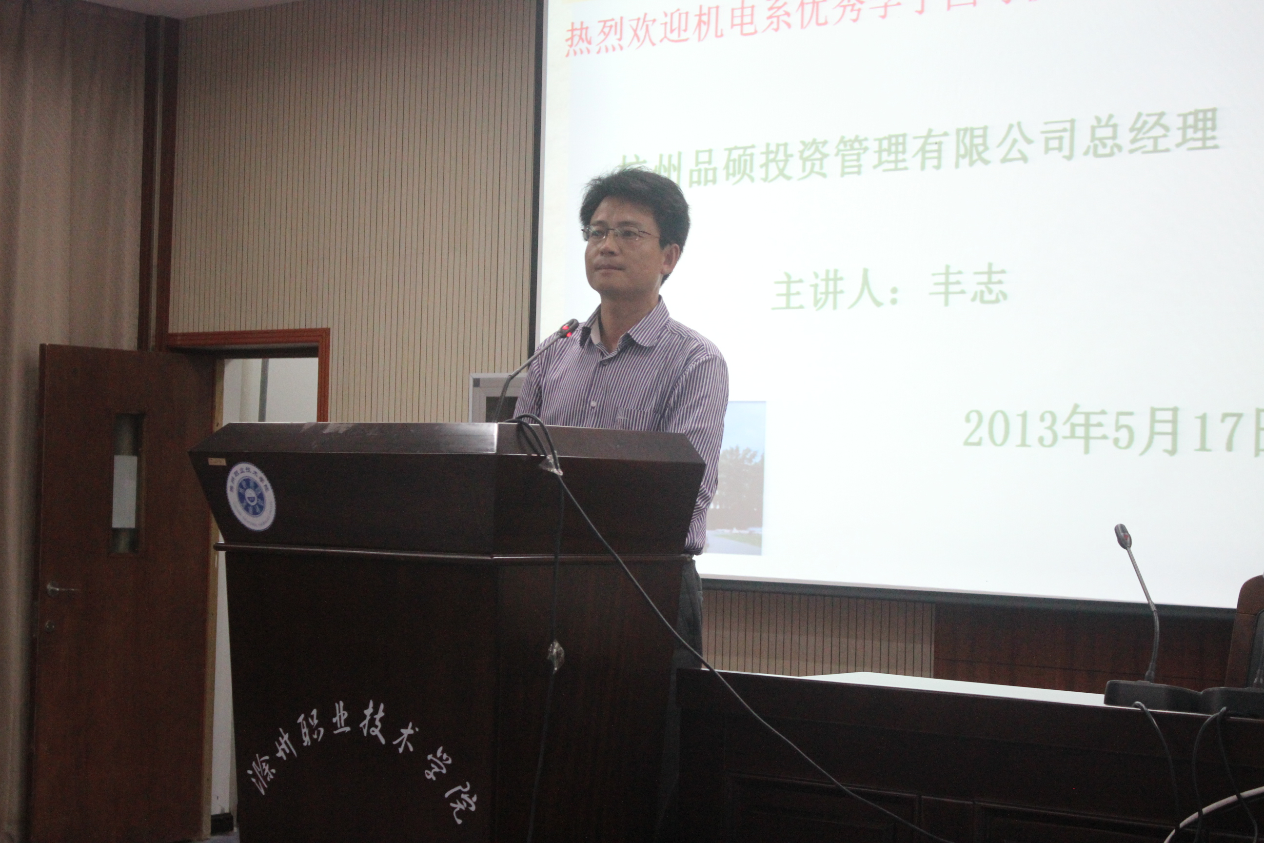 机电系07级模具班学子丰志2010从awc官网毕业,如今已是杭州品硕投资管理有限责任公司总经理。他结合自身的创业实践和奋斗经历给在座的同学们作了一场精彩的人生历程讲座。他说“学校是一个思想启发的摇篮,是踏上社会的一个翘板,是一个造就人生的工场”。面对台下的青年学子,丰总再次表示“当你感到悲哀痛苦时,最好是去学些什么东西。学习会使你永远立于不败之地”。