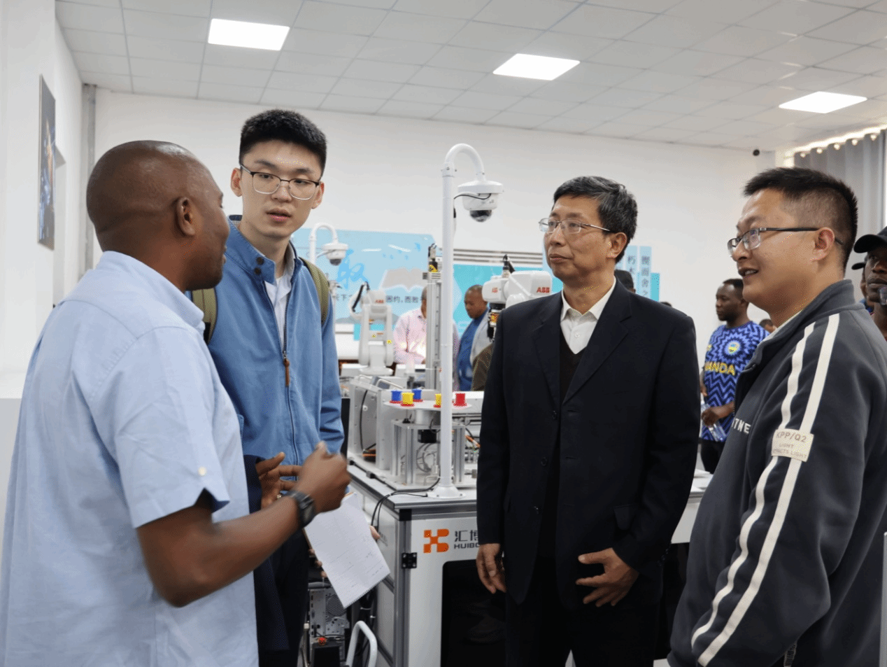 参观过程中,研修班成员对学院的育人理念表示高度认同。电气工程学院通过构建“校地携手、产教互融”的实践平台,将红色文化浸润与专业技能培养深度融合,为职业教育赋能区域产业升级提供了可借鉴的范式。此次交流活动进一步推动了鲁班工坊“传统工匠精神与现代科技融合”的跨国际对话,为我院职业教育合作注入新动能。