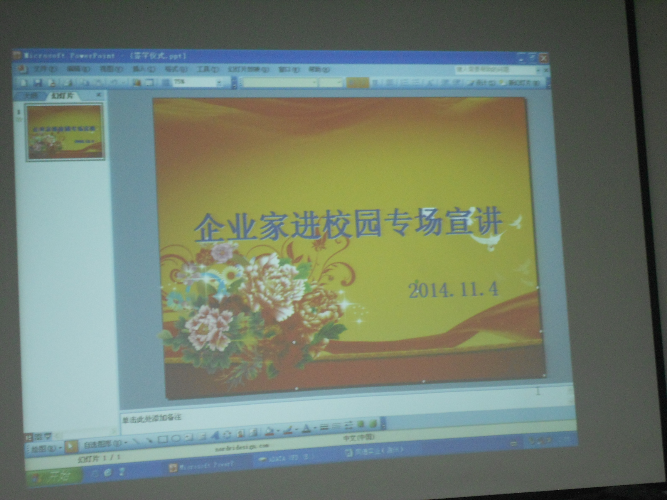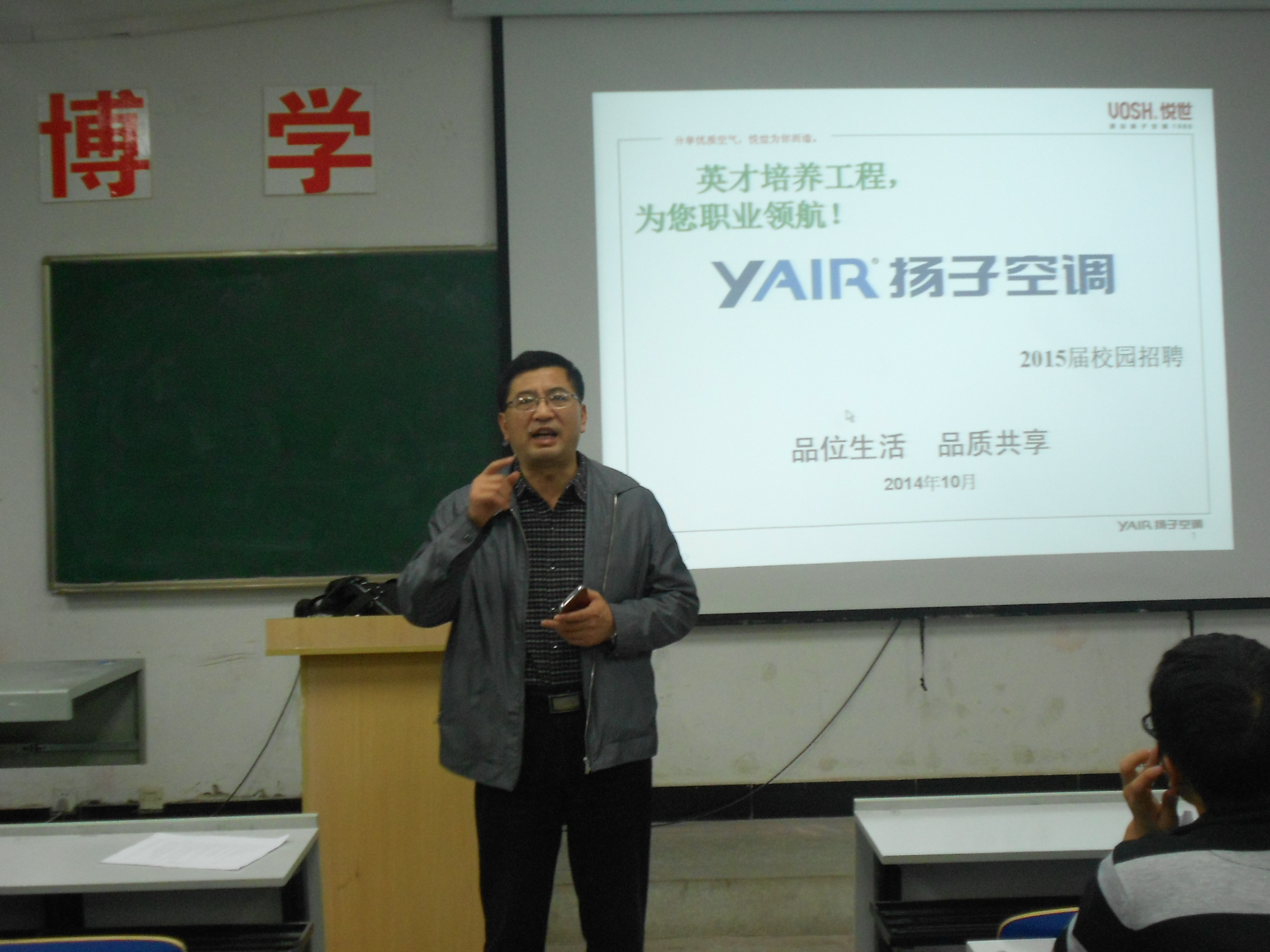 为促进大学生深入企业、了解企业、了解社会对人才的需求,2014年11月5日下午企业家进校园专场宣讲活动在我机电系5102教室隆重举行,本次来院专场讲座的企业有同德实业滁州有限公司、长电科技(滁州)有限公司、扬子空调等著名企业,他们分别为学生带来了生动的演讲。