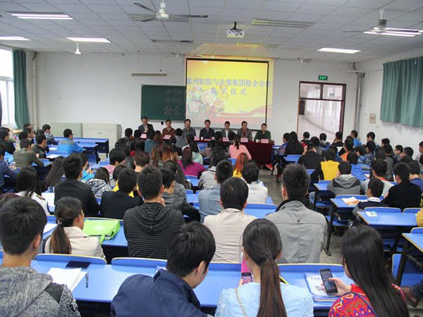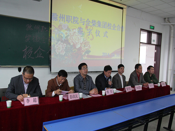 我院招生就业处副处长李超主持了本次仪式。全柴集团人力资源总监夏守武首先介绍了公司的发展历史,将优势与其他同类型公司做对比,展现出自己的优势。他认为校企合作作为培养技能型人才的办学模式,符合社会的潮流与需求,而专家引领、行业支持、企业参与是校企合作的必由之路,也是职业发展教育的坚实依据。紧接着院长助理、招生就业处处长穆松致词。他鼓励同学们去多做尝试,认为这是同学们迈出校园的第一步,需要有这么一个平台让我们去适应和展示。随后双方代表签字,授牌。最后,全柴集团人力资源部副经理彭尚友对全柴动力股份有限公司的发展及用人需求进行了全面的介绍。