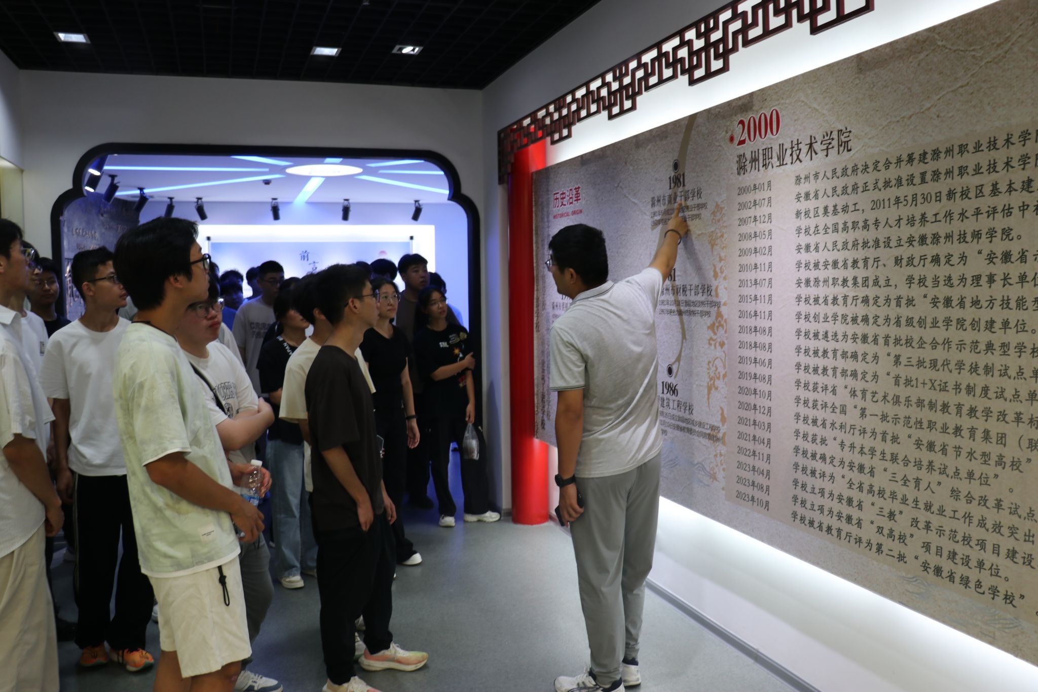 活动当日,新生们以班级为单位,在辅导员老师的带领下有序进入校史馆。校史馆内陈列丰富,史料详实,生动展现了学校自建校以来的峥嵘岁月、办学成就与文化传承。学院团总支书记臧铭以饱满的热情和专业的素养,为同学们进行了深入浅出的精彩讲解。他从学校的创办背景、历史沿革讲起,并重点介绍了学校在职业教育领域取得的辉煌成就、特色鲜明的育人理念以及服务地方经济发展的突出贡献。
