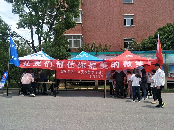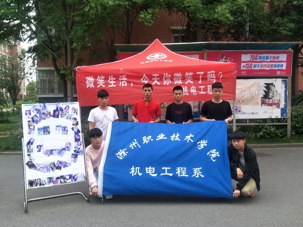 为了普及心理健康知识,提高同学们的心理健康水平,营造活泼、健康向上的校园文化氛围。5.25心理健康月,机电工程系承办“2018世界微笑日征集笑脸活动”,通过前期充分准备,制定活动方案,于5月10日在女生宿舍1号楼下顺利开展笑脸征集。