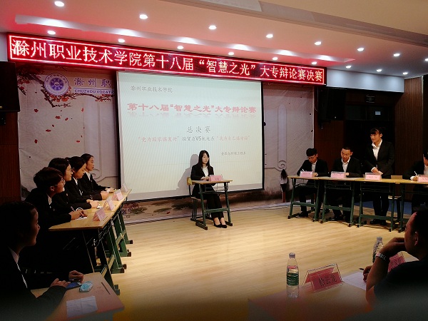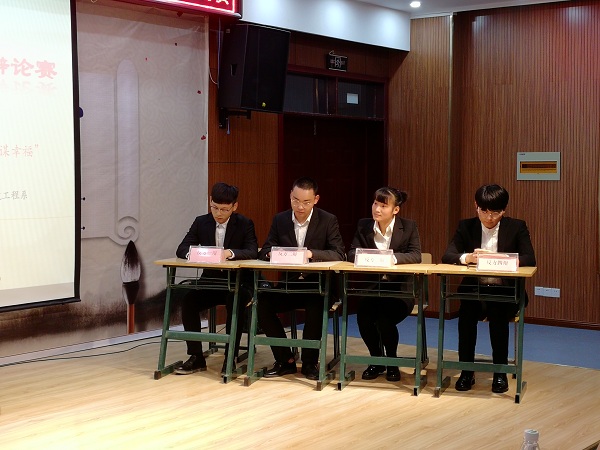 学院第十五届校园文化节之第十八届“智慧之光”大专辩论赛决赛于2018年5月23日晚七点在南阶203教室举行,机电系通过两轮淘汰赛顺利进入决赛,由谢文平、程娟、管浩楠,杨潇四人代表参赛。