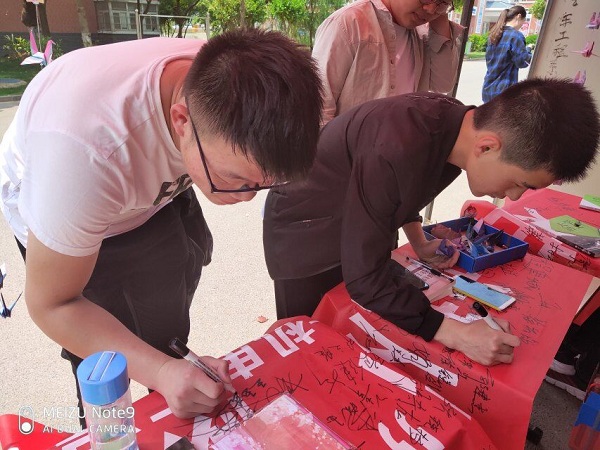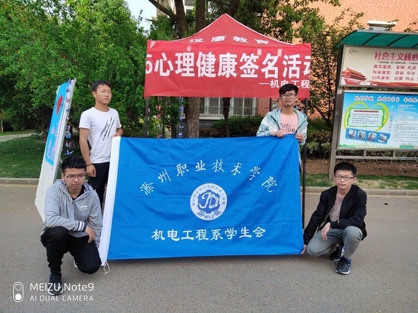 为提升大学生心理健康意识,增进同学人际交往能力。5月10日中午,机电系学生会在女生宿舍1号楼下举办了“5.25”心理健康主题签名活动。