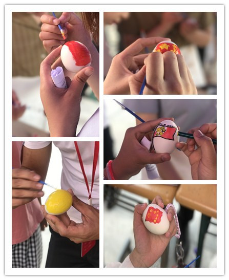 活动主要以彩绘的形式,在规定时间内以爱国为主题,在鸭蛋上进行绘画,同学们大多以画五星红旗来表达对祖国的热爱,也有画龙舟、粽子来呈现端午的风味,展示中华文化的魅力,活动在热烈而又欢快的氛围中落下帷幕。