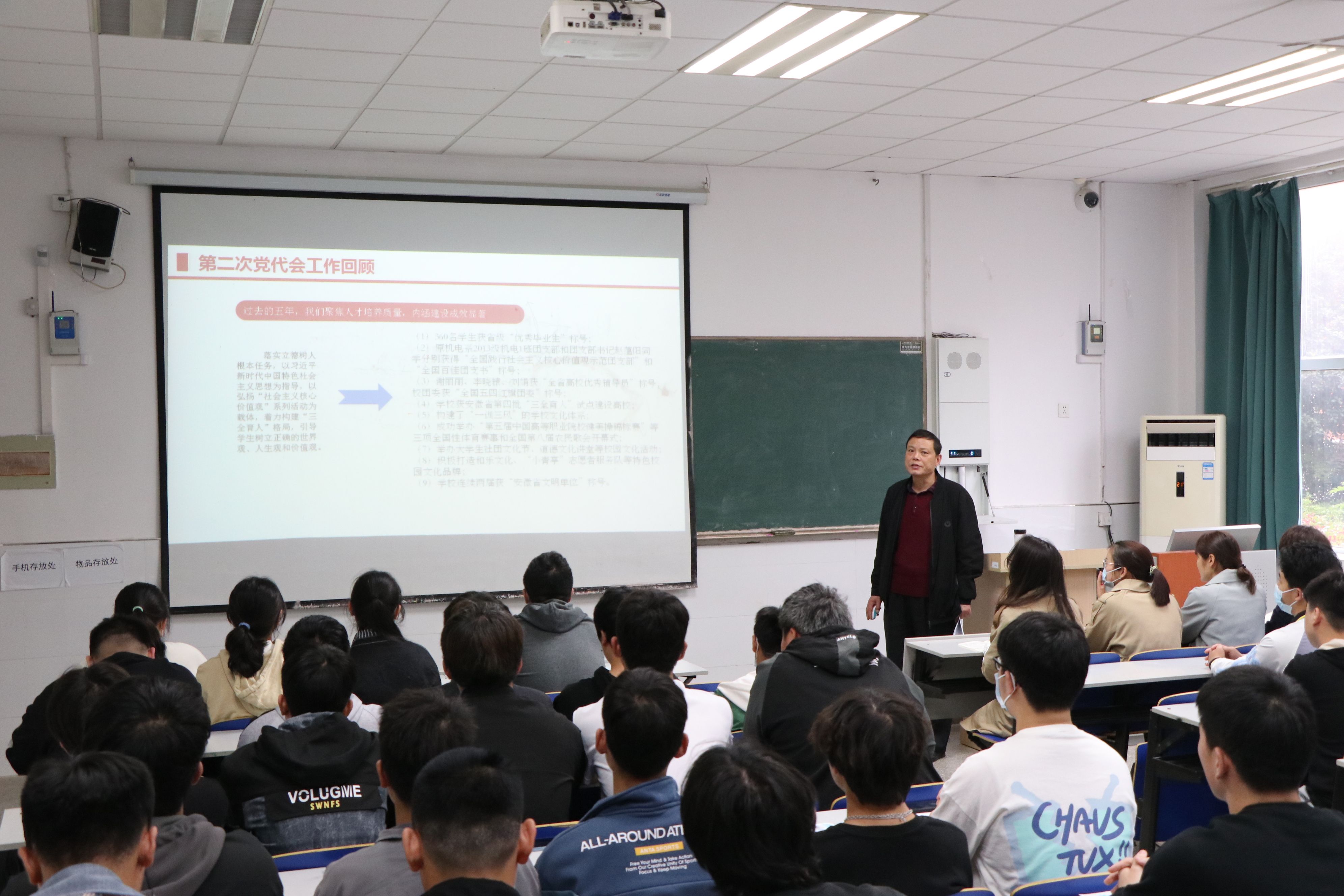 晋太洋从学校第二次党代会工作回顾、2358目标解读、今后五年的奋斗目标三个方面进行了详细的讲解。为同学们回顾了学校过去五年的七个聚焦和五个坚持,并从高职教育发展、区域产业发展、学校自身发展三方面阐述了当下面临的机遇与挑战。