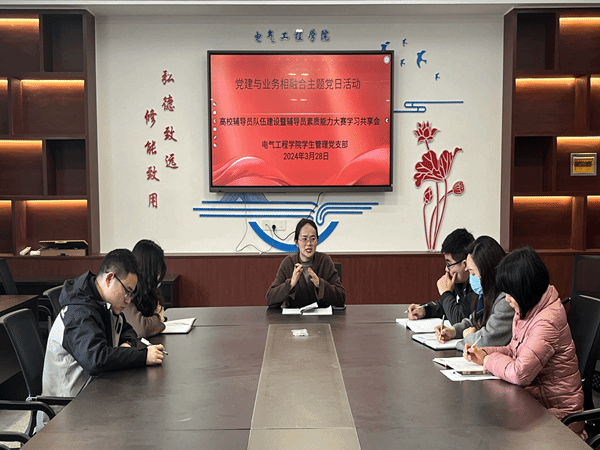 为推动党业融合,促进党建与专职辅导员业务树立一盘棋意识,把党建和学生管理工作结合起来,双向促进,深度融合,电气工程学院学生管理党支部以高水平高职院校建设为契机,对标“双高”建设目标,以高校辅导员素质能力大赛备赛经验为研讨主题,开展党业融合主题党日活动。