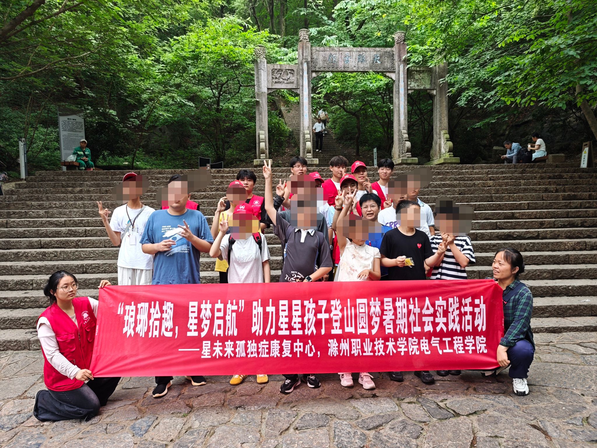 为响应高校服务社会号召,传递温暖与力量,让特殊儿童感受自然之美与人文关怀,6月12日上午,电气工程学院组织学生志愿者赴陈桥社区星未来孤独症康复机构,开展主题为“琅琊拾取,星梦启航”的暑期“三下乡”社会实践活动。活动旨在陪伴“星星的孩子”攀登琅琊山,以爱心陪伴助力孩子们拓宽视野、融入自然,同时锤炼青年学子社会责任意识。