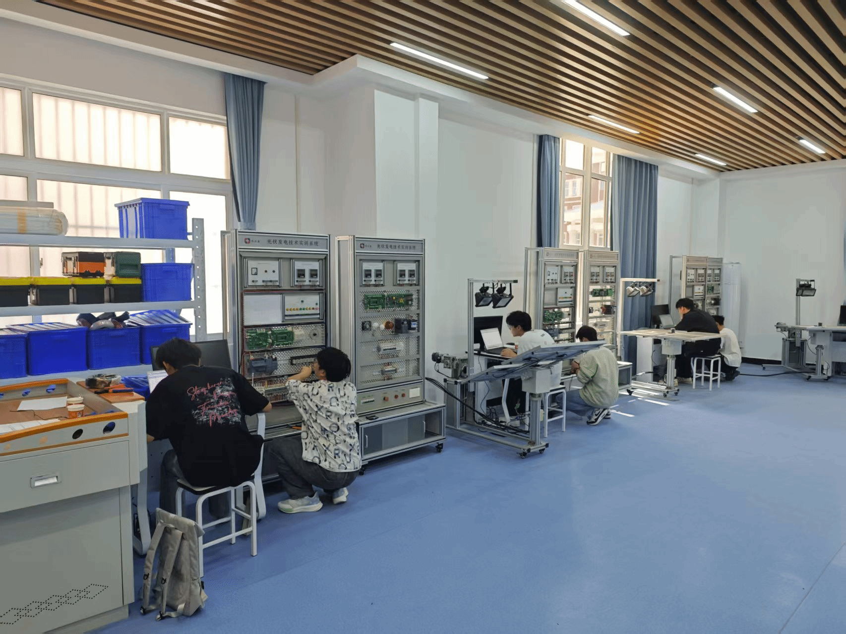 比赛为期一天,每支参赛队伍由2名选手组成,各队选手同场竞技,展示技能与风采。此次大赛紧密围绕新型电力系统领域的前沿技术与实际应用,设置了涵盖新能源发电系统设计与装调、电气识图、PLC 系统设计与调试等多个关键环节的竞赛内容。不仅全面考察了参赛选手在光伏专业岗位的综合知识与核心能力,更将团队协作意识、劳动精神以及工匠精神融入考核范畴,旨在全方位打造适应 “双碳” 时代需求的高素质技术技能人才。