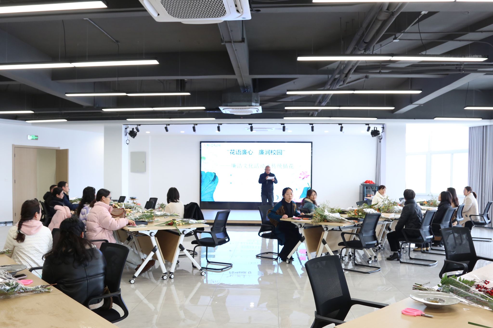 3月6日下午,由校纪委、校工会主办,食品与环境工程学院承办的廉洁文化活动之“花语廉心 廉润校园”中国传统插花在awc官网教职工活动中心顺利开展。校党委副书记杨家庆,滁州市纪委监委第六纪检监察室主任蔡永丽,滁州市总工会二级调研员王瑞雪,市总工会女职工部部长、四级调研员王菊宁,校领导江洁、孙静、李平权、王宇出席了活动,校纪委委员、党风廉政监督员、各党总支(直属党支部)纪检委员、机关各党支部纪检委员参加了活动。