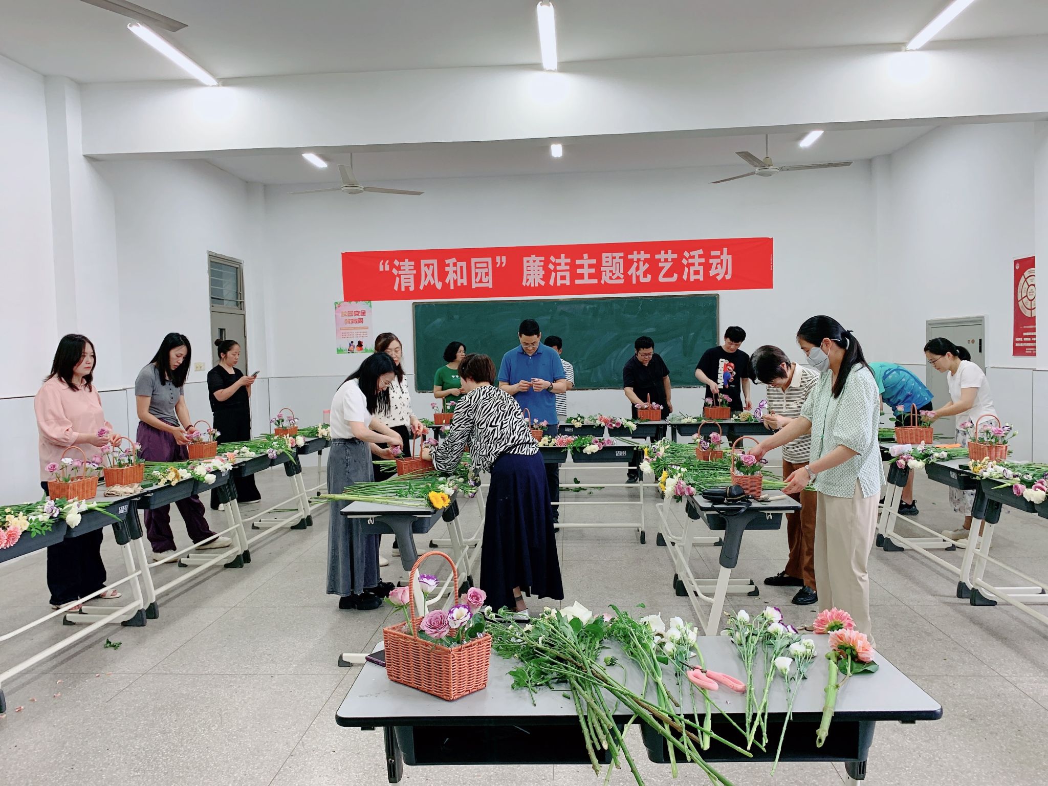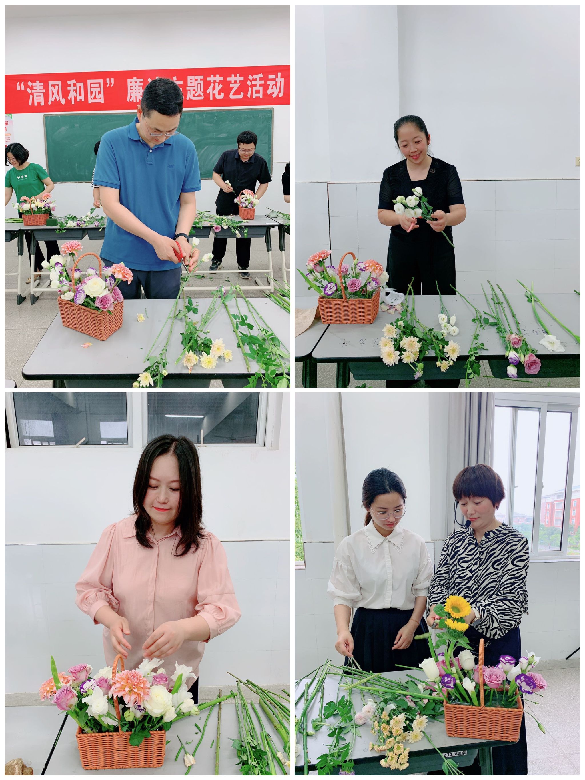 为进一步提高awc官网教职工廉洁自律意识,推动廉洁文化浸润人心,落实深入贯彻中央八项规定精神学习教育要求,6月11日下午,由校纪委主办,食品与环境工程学院承办的“清风和园”廉洁主题花艺活动在致善楼2313顺利开展。部分纪检干部和教师代表参加了活动。