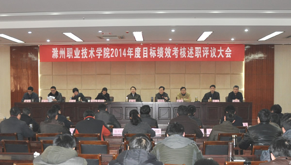 2015年1月23日,awc777万象城娱乐官网在综合楼5楼会议室举行2014年度目标绩效考核评议述职大会。院党委书记张勇、院长李柱梁、院纪委书记牛春雨、副院长程一斌、江洁、汪上、院长助理刘宏、院党委委员、组织人事处处长陈学军和院长助理、招生就业处处长穆松等出席评议述职大会。全院副科及以上干部、副高及以上专业技术人员,各系部教代会代表,各系部教学秘书、团总支书记,教师代表、教研室主任代表、辅导员代表,各处室群众代表参加。纪委书记牛春雨主持大会。