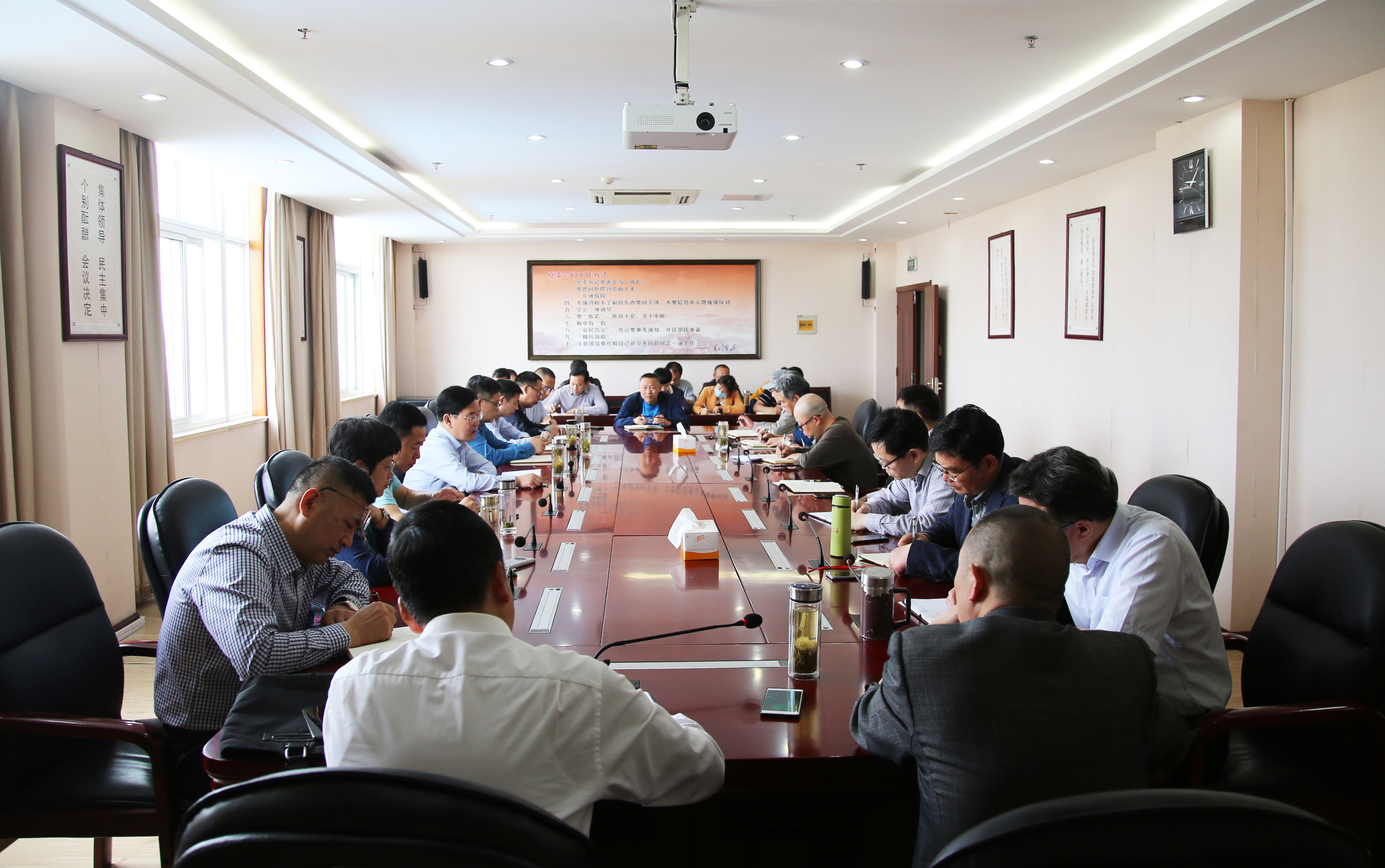 李柱梁带领大家深入学习贯彻习近平总书记关于疫情防控的重要指示精神,传达学习省委常委会议暨省疫情防控工作领导小组会议和市委常委关于研究部署疫情防控工作等有关会议精神。为进一步做好学校常态化疫情防控工作,李柱梁提出四点要求:一是思想上高度重视,强化责任意识。各教学院部、各部门要谨防麻痹、懈怠的错误思想,正确认识常态化疫情防控工作的重要性,通过召开主题班会的形式将疫情防控工作要求传达到每名学生;二是加强学校重点环节的管控力度,严把“校门关”,强化教室、图书馆和食堂等公共场所的防控管理,师生员工科学规范佩戴口罩,保持勤洗手、常通风、“一米线”等良好卫生习惯,值班人员须严格履行值班职责,如遇突发事件或重大问题,必须按照学校信息报告制度向值班领导和有关部门报告,并根据相关应急事件处理原则和学校领导的要求开展工作;三是后勤服务中心等有关部门要结合疫情发展形势,做好防疫物资的储备工作;四是各教学院部、各部门要加强工作协调,积极配合,按照有关要求做好疫情防控工作。