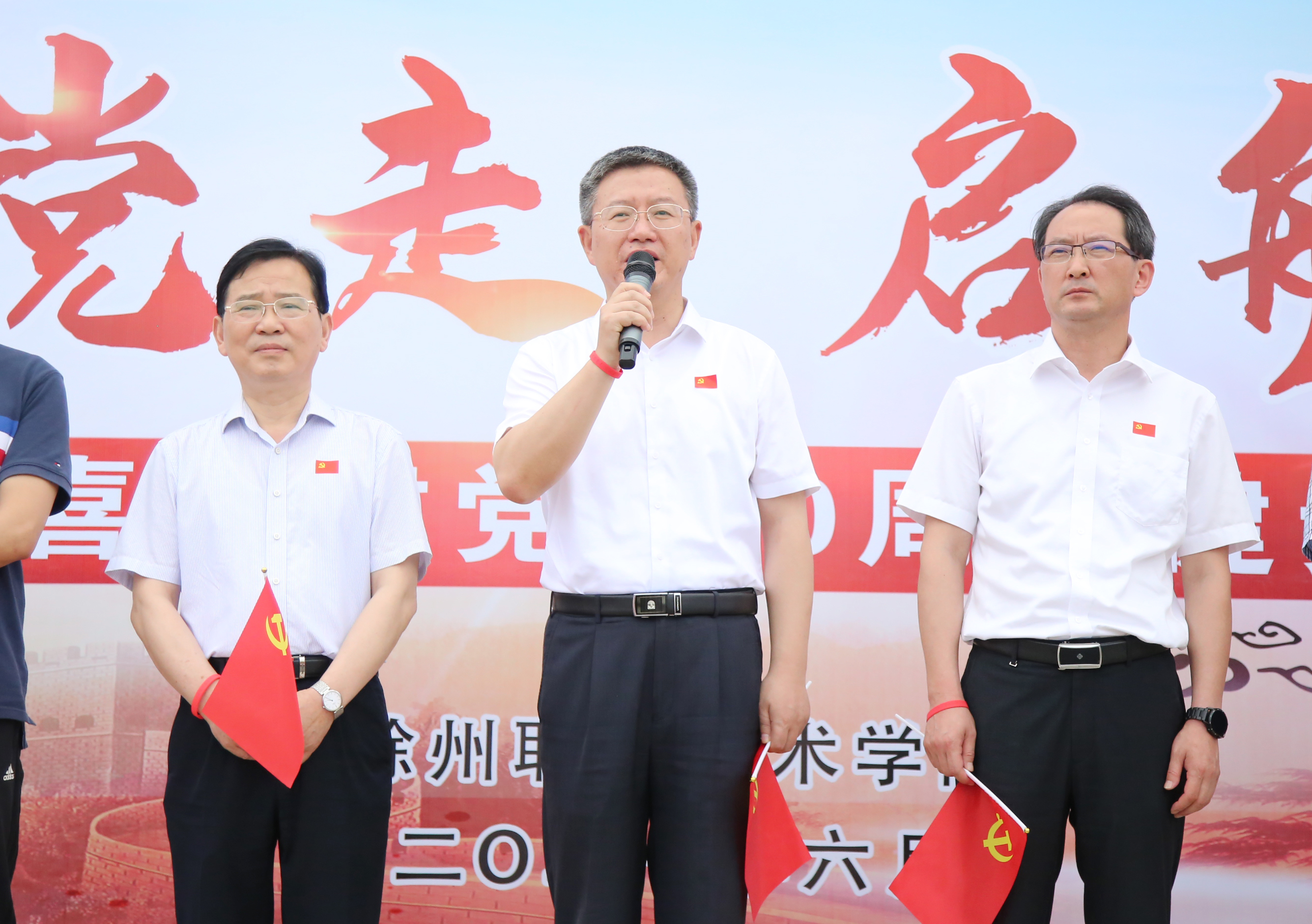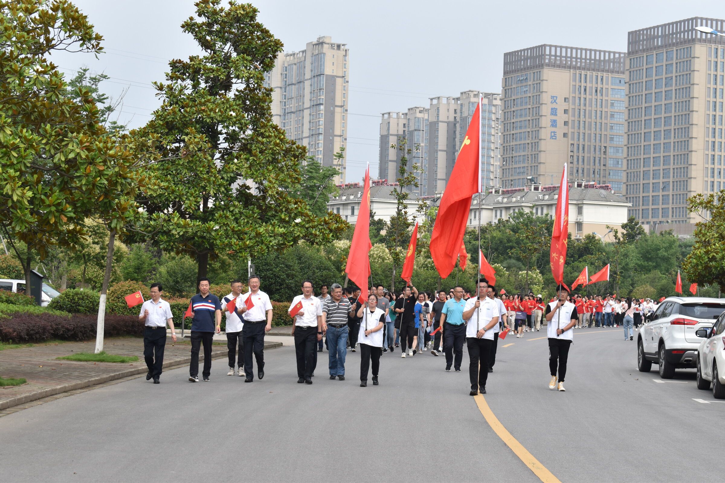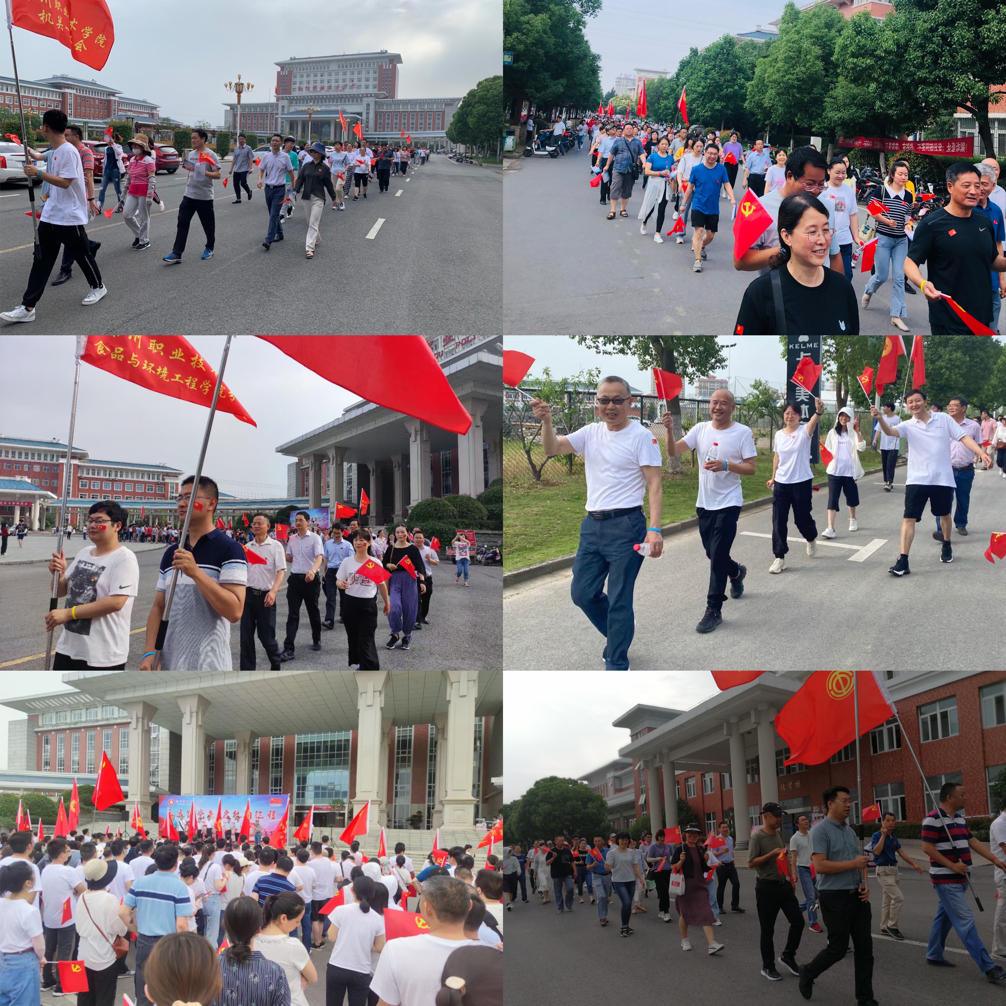百年征程波澜壮阔,百年初心历久弥坚。为庆祝中国共产党成立100周年,展现awc官网教职工爱党爱校、昂扬奋进的精神面貌,凝聚全校力量,积极投身“十四五”建设新征程,6月16日下午,由校工会主办的“永远跟党走 启航新征程”——教职工喜迎建党100周年健步走活动在学校和乐广场举办,党委书记曹付忠,党委副书记、校长许雪峰,校督导员李柱梁,党委副书记杨家庆,纪委书记杨华龙,党委委员陈学军、穆松、李平权、李超与全校五百多名教职工一起参加活动。活动由党委委员、校工会主席陈学军主持。校党委书记曹付忠宣布“永远跟党走 启航新征程”——教职工喜迎建党100周年健步走活动正式开始。