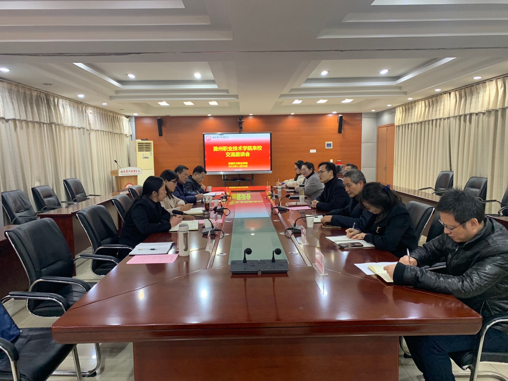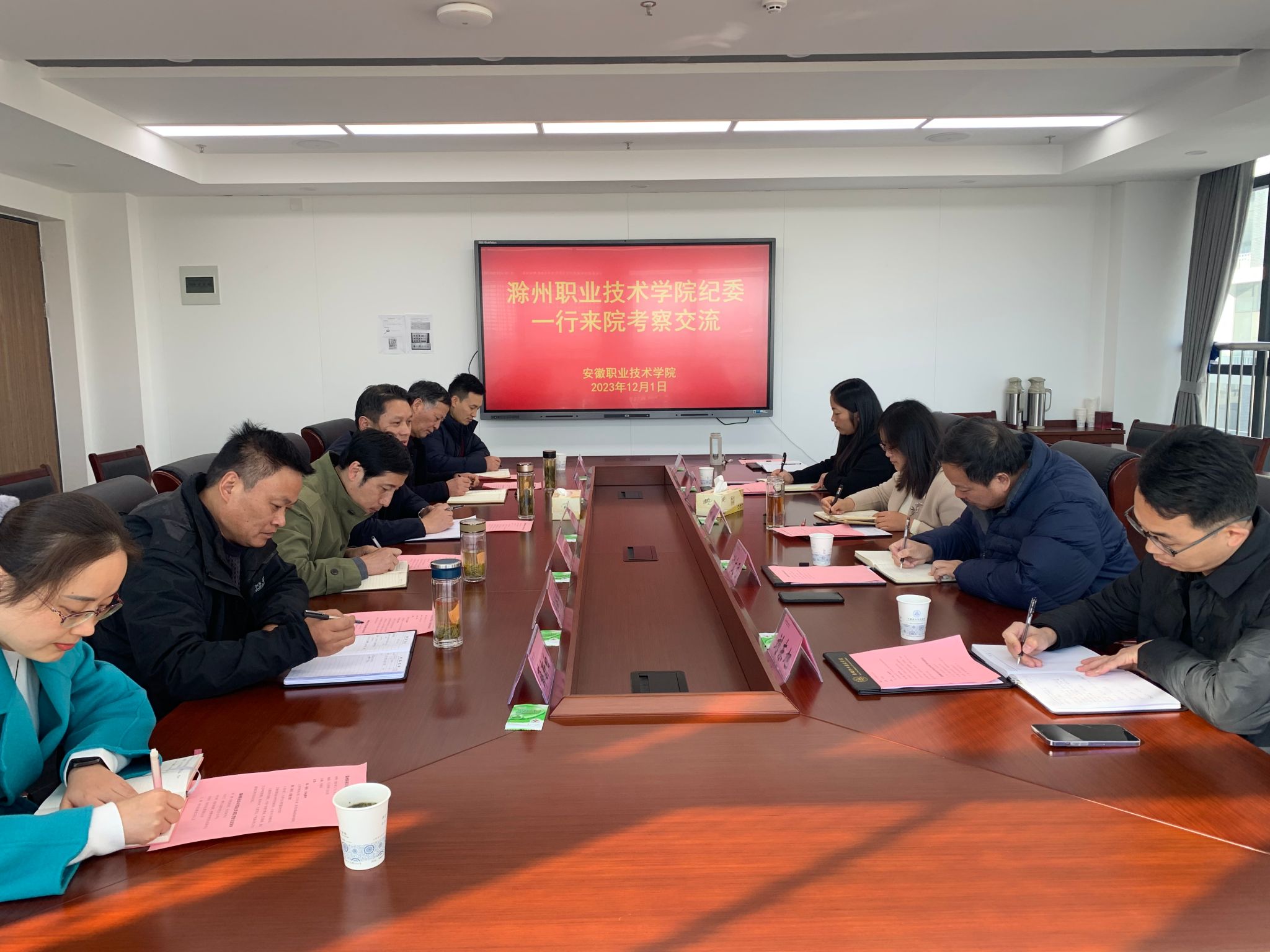 为扎实推进学习贯彻习近平新时代中国特色社会主义思想主题教育,落实学校“大学习、大讨论、大调研”活动部署。11月30日和12月1日,校党委委员、纪委书记孙静带队赴安徽艺术职业学院、安徽职业技术学院开展调研交流。