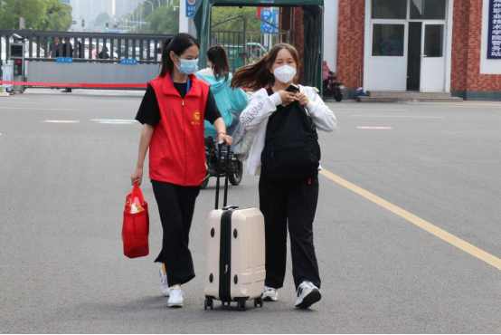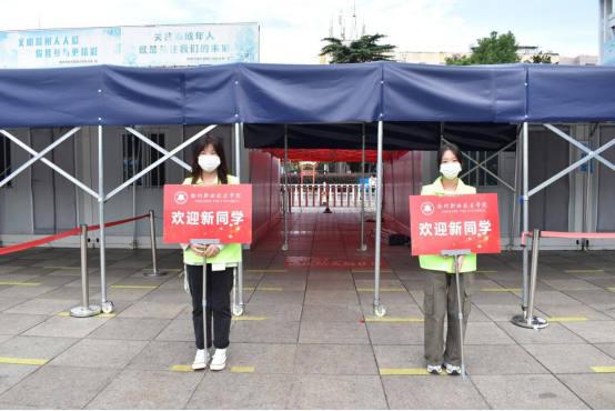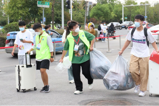 学校门口,师生志愿者同心聚力、各司其职,学生志愿者帮助报道新生搬运行李,教师志愿者强化校门口疫情防控工作,严格检查48小时内核酸检测阴性报告、健康码以及行程码。他们的每一次体温监测、行李消杀都为全校师生的疫情防控安全保驾护航。