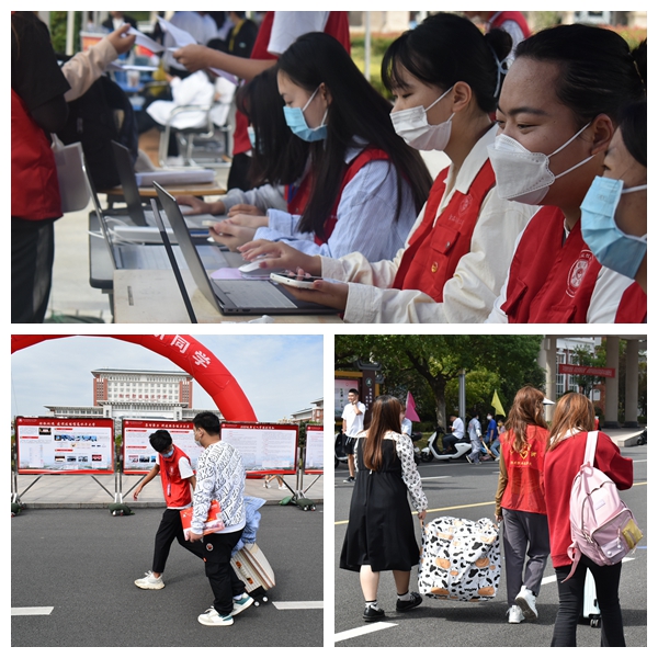 随着新生陆续来到迎新点报到,迎新工作进行得如火如荼,“红马甲”忙碌的身影随处可见。有的引导新生报到,维护现场秩序;有的帮助搬运行李,带领新生前往宿舍安顿,不断往返、穿梭不停,迎新工作温暖高效、井然有序,在新生及家长面前展现了乐于助人、勇于奉献的精神面貌,让初来乍到的新同学们感受到了食环学院团结友爱、温暖热情的氛围,增强了新生们对学院的认同感和归属感。