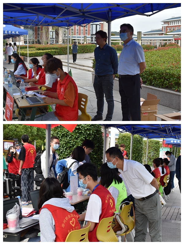 9月21日清晨,沐浴着清晨的阳光,食环学院迎新正式启动,志愿者们早早地来到各自岗位,精心布置好新生报到处,等待新生的到来。学院党总支书记陈震、院长梁建军等院领导来到迎新现场,慰问工作人员,指导迎新工作,了解报到进展,要求迎新志愿者以饱满精神状态和热情的服务迎接每一位新生的到来。