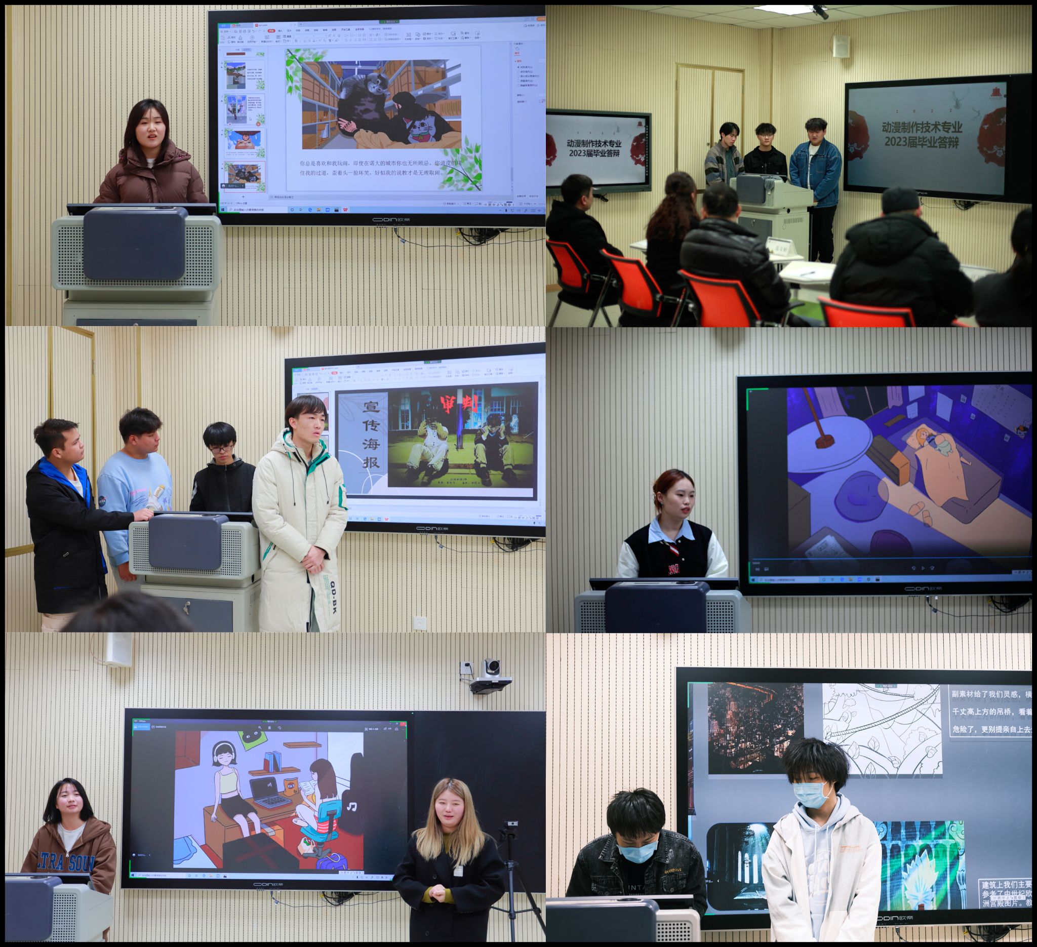 毕业设计答辩是大学生全面展示自己的勇气、雄心、专业技能、智慧、风度和口才的最佳时机。通过本次答辩,充分体现了2023届动漫制作技术专业全体同学的风采神韵,独出心裁。他们都是传媒学院莘莘学子中优秀的一员。