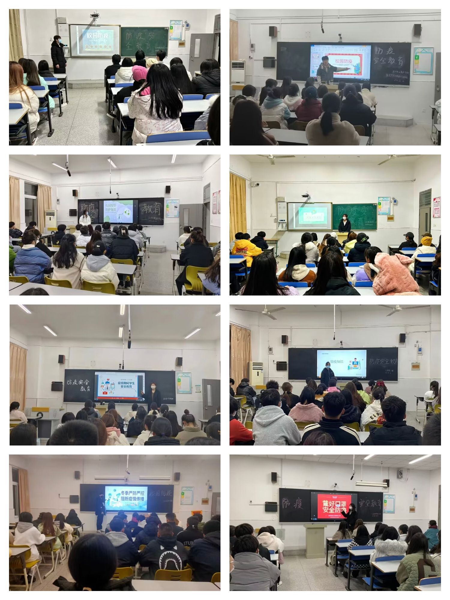 各班级以班会的形式,准备PPT讲解,号召同学们要人人当好“疫情防控第一责任人”,增强防范意识,按时完成健康打卡,不得瞒报,缓报、谎报旅居史和接触史;要合理规划返程路线,提前准备好必要的防护用品;养成良好的卫生习惯,勤洗手、多通风、少聚集;正确佩戴口罩,保持社交距离;要主动承担社会责任,严格遵守和落实所在地的疫情防控要求,不聚集、不扎堆,主动配合亮码、扫码和体温检测工作等。