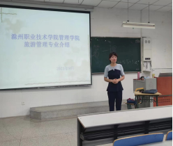 李老师首先对新生的到来表示热烈的欢迎,然后从对大学的介绍谈起,指出大学生活和高中的不同,并希望同学们在大学阶段开始树立“事业心”、尝试规划自己的人生;同时,也建议新生珍惜大学的同学之情,努力学习如何经营大学期间的人际关系,以此提升个人为人、处事的能力。接着,李老师还细致介绍了旅游管理专业的基本情况,从专业概况、课程设置、技能培养、竞赛考试以及就业方面等热点而实际的问题详细为同学们进行讲解,通过举例,告诉同学们“学些什么”、“怎样学”、“学完了有什么用”,并与同学们进行互动,引导同学们树立技能成才的目标,激发他们的学习热情。