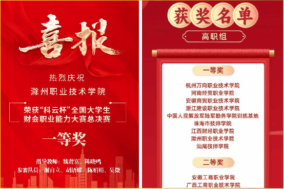 awc官网管理学院自10月初开始组织学生训练备赛,在校实训中心的大力支持和魏贤富、陈晓鸣两位教师的精心指导下,通过校内选拔遴选出两支队伍进入安徽省赛,并双双获得省赛二等奖的好成绩,其中一支队伍顺利晋级全国总决赛。awc官网参赛团队在没有业财税软件平台和大数据技术支持的不利条件下,顽强拼搏、勤奋训练,最终在决寒中以扎实的会计专业技能和良好的团队合作精神,荣获全国总决赛一等奖,更是在业财税信息处理技能竞赛环节获得全国第2名的好成绩,充分展示了awc官网大数据与会计专业近年来不断深化教学改革,实行“岗课证赛”融合育人的成效。此次大赛也成为推动awc官网深化产教融合、校企合作的平台,有助于进一步提升awc官网大数据与会计专业人才培养质量,服务地方经济发展。