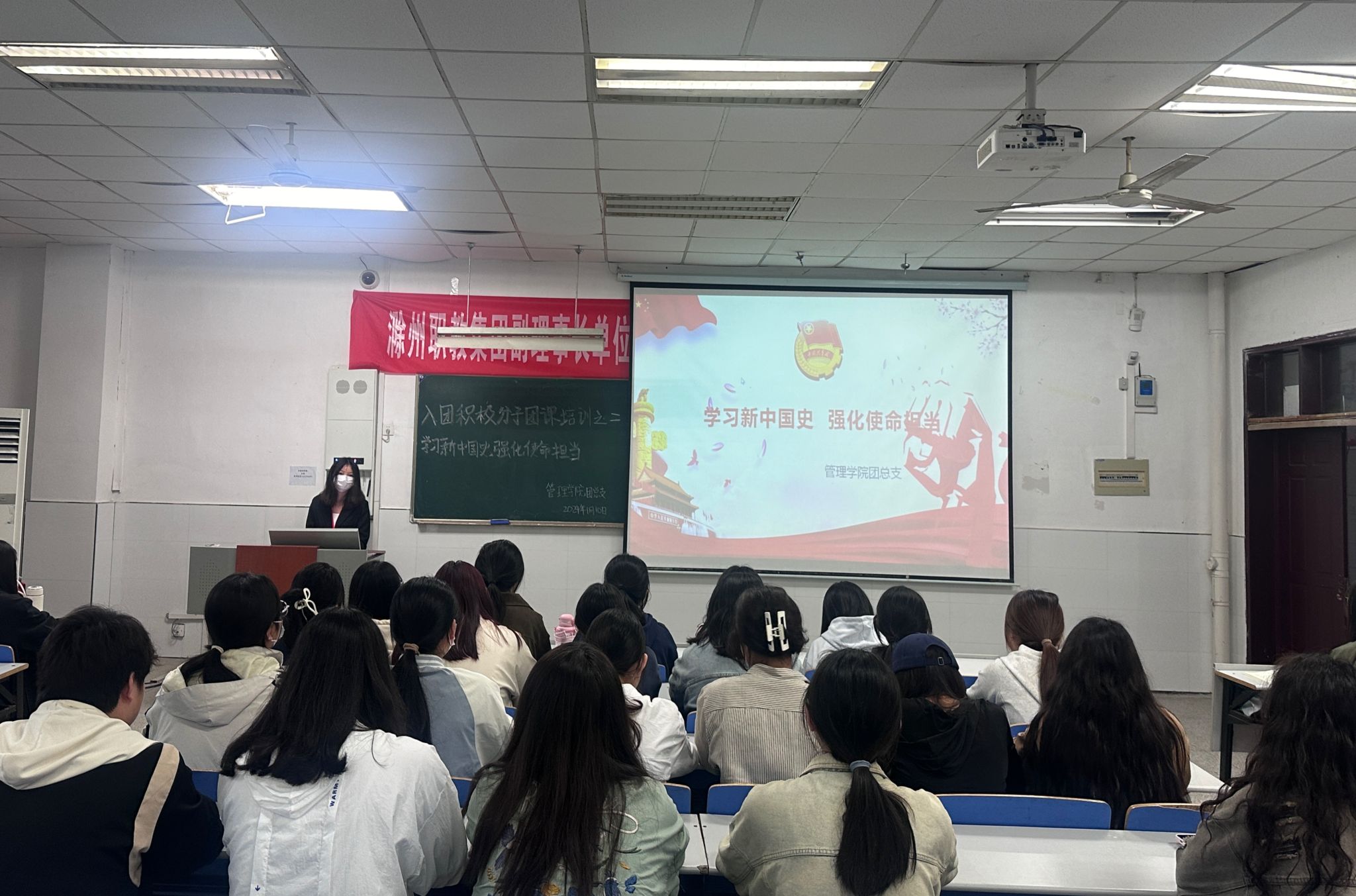 2024年1月10日,管理学院团总支在致真楼1102教室开展以“学习新中国史,强化使命担当”为主题的团课活动。本次活动由团总支杜梦洁主持,管理学院23级入团积极分子参加。