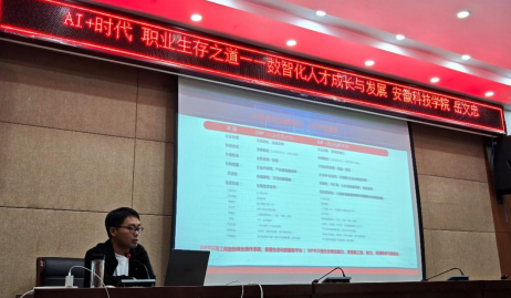 11月6日下午,管理学院举办“大师进校园”活动。管理学院邀请安徽科技学院会计系主任、硕士生导师岳文忠副教授在南阶205教室,为两校联合培养的专升本会计学专业全体同学做了题为《AI+时代 职业生存之道——数智化人才成长与发展》的讲座。专升本会计学专业的部分授课教师参加了听讲。