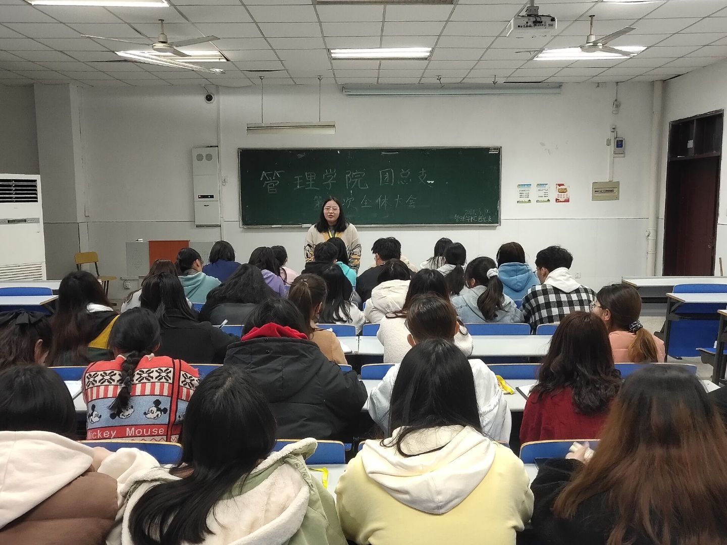 管理学院团总支于3月15日晚在1102教室召开“管理学院团总支第九次全体大会”。本次会议由胡春晓负责,团总支全体成员参加。