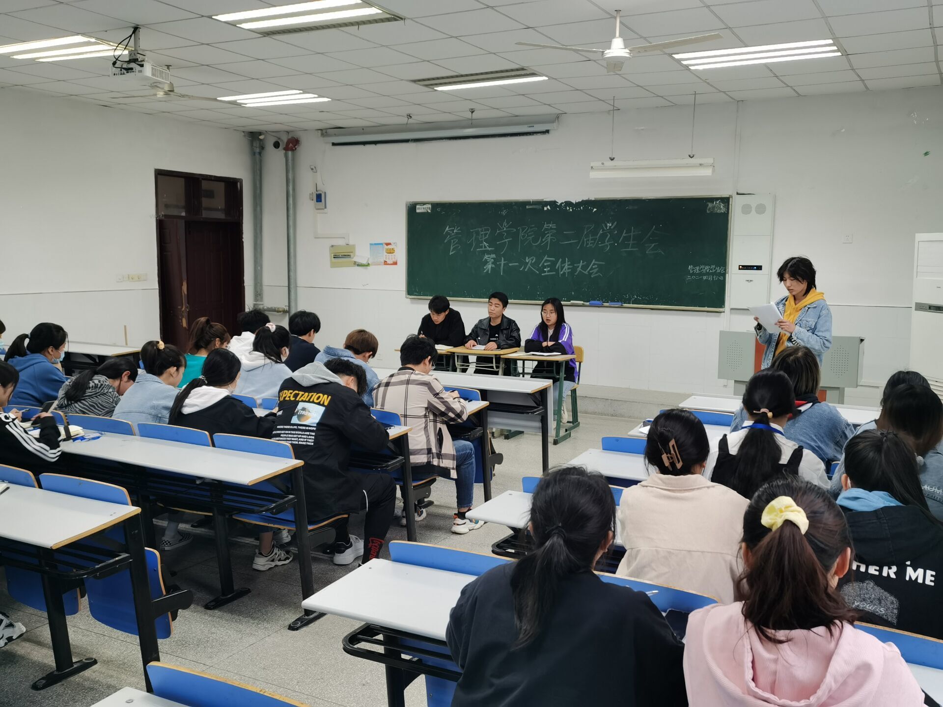 管理学院学生会于4月19日晚上6时在1101教室召开“管理学院第二届学生会第十一次全体大会”。
