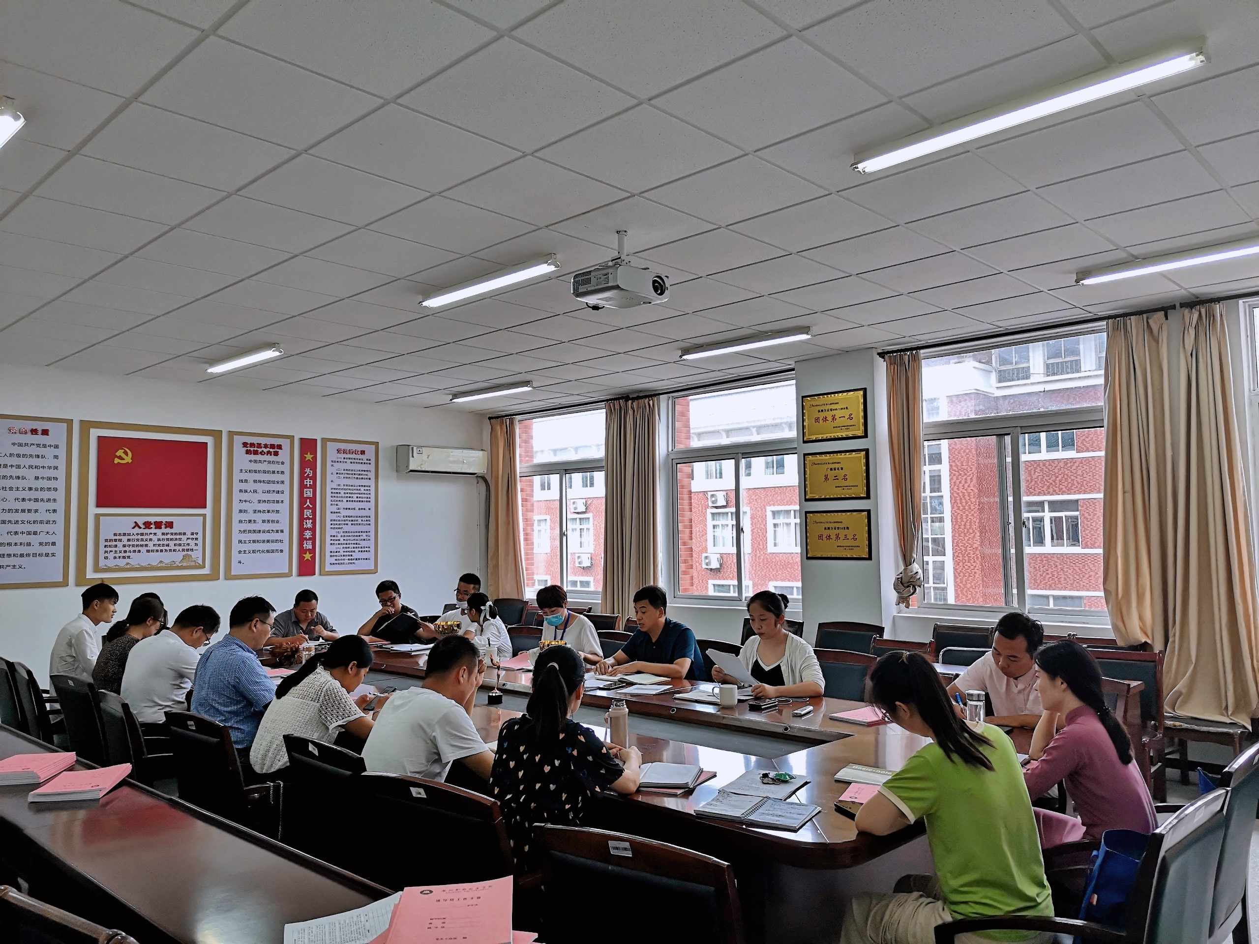接下来,何文婧带领大家学习了《awc777万象城娱乐官网2021年秋季学期开学学生返校工作方案》、《关于做好2021—2022学年第一学期开学阶段学生教育管理相关工作的通知》等文件,重点介绍了学生返校途中及返校后的疫情防控相关内容,要求各辅导员强化思想认识,高度重视常态化疫情防控工作,坚持每日晨午晚体温检测并报告和今日校园APP打卡,坚决落实学校关于疫情防控的相关工作要求。会议最后,耿学刚传达了学校《校园环境综合整治行动工作方案》、《2021年秋“学生优良学风暨校园文明行为提升”活动实施方案》、《师德专题教育工作实施方案》等文件精神,要求全体辅导员要有高度的责任意识,忠于党的教育事业,做好学生成长成才的引路人,以学校“十四五”规划为新的契机,开创管理学院发展新气象。