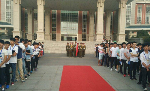 2015年8月31日清晨,经济贸易系团总支、学生会组织200余名同学参加了由院团委举行的“纪念反法西斯战争暨中国抗战胜利70周年”的主题升旗仪式。