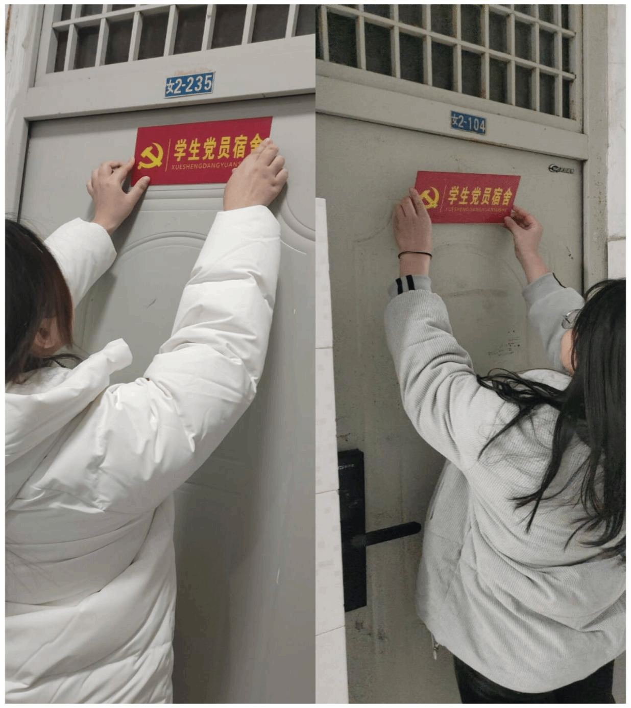 在活动中,通过亮明党员身份,增强党员意识,以自身的形象和实际行动带动其他同学养成良好的行为习惯,共建“整洁有序、文明进步”的学生宿舍,真正发挥“一名党员、一面旗帜、一间党员宿舍、一座先锋堡垒”的引领作用。强调“党员宿舍”是党员们的标志牌,挂上“学生党员宿舍”这块牌,便需时刻以一名共产党员的标准严格要求自己,充分发挥党员的模范带头作用,以自我先锋示范带动学生社区规范化建设,努力营造和谐有序、文明健康的宿舍氛围。