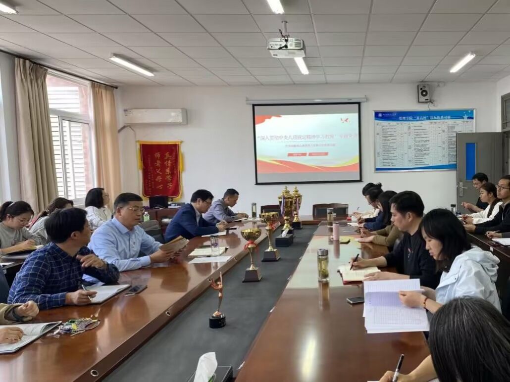 4月23日下午,管理学院在1405会议室召开“深入贯彻中央八项规定精神学习教育”专题党课。本次党课主题为《作风问题核心是党同人民群众的关系问题》。党总支书记耿学刚、副院长颜洲、党总支副书记翁嘉晨、学生工作处副处长朱亚春及全体党员教师出席会议。党课由耿学刚主讲。