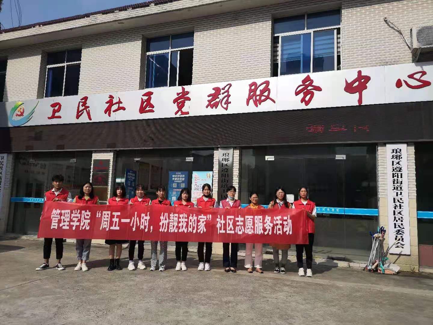 管理学院党总支于5月21日下午在卫民社区开展“周五一小时,扮靓我的家”社区志愿活动。此次活动由4名教师党员和8名学生入党积极分子参加。